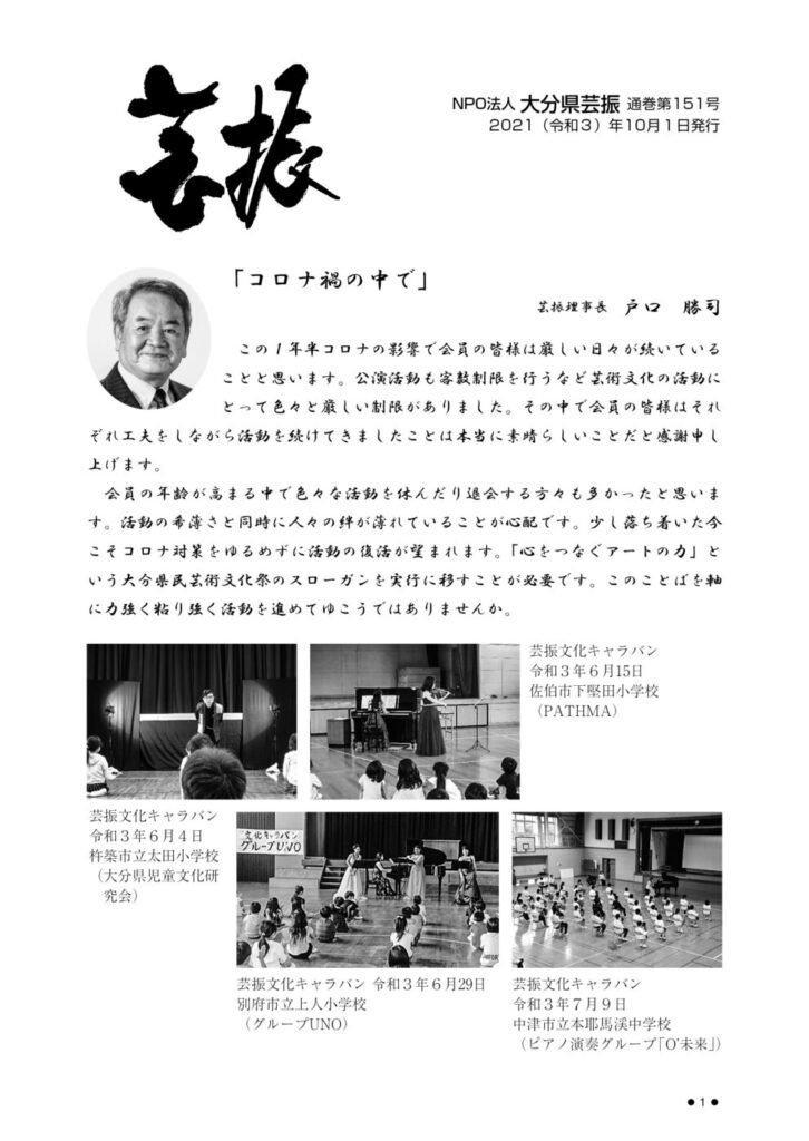 芸振の事業、会員への情報を中心に編集した機関紙「芸振」を年2回程度発行しています。また、芸振の会員の活動や県内の文化行事を掲載した「大分県文化年鑑」を発行しています。さらに、会員を中心に県内の芸術文化活動に関する資料の収集に努めています。