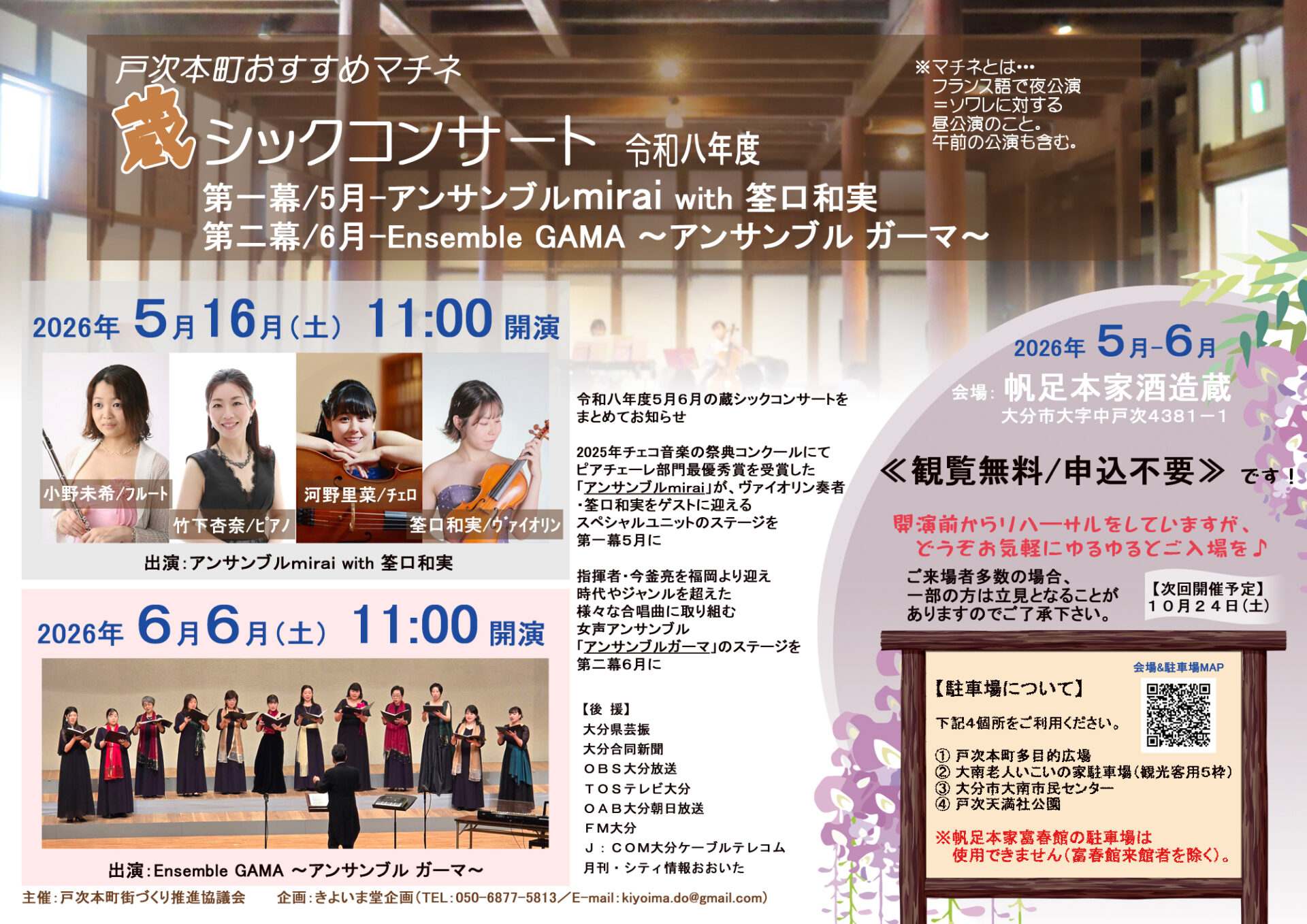 令和八年度 戸次本町おすすめマチネ 蔵シックコンサート