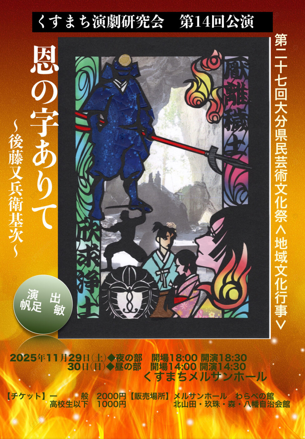 「恩」とは、恩義・感謝・信頼であり、武将としての姿の他、後藤又兵衛の生き方・考え方を舞台で表現する。