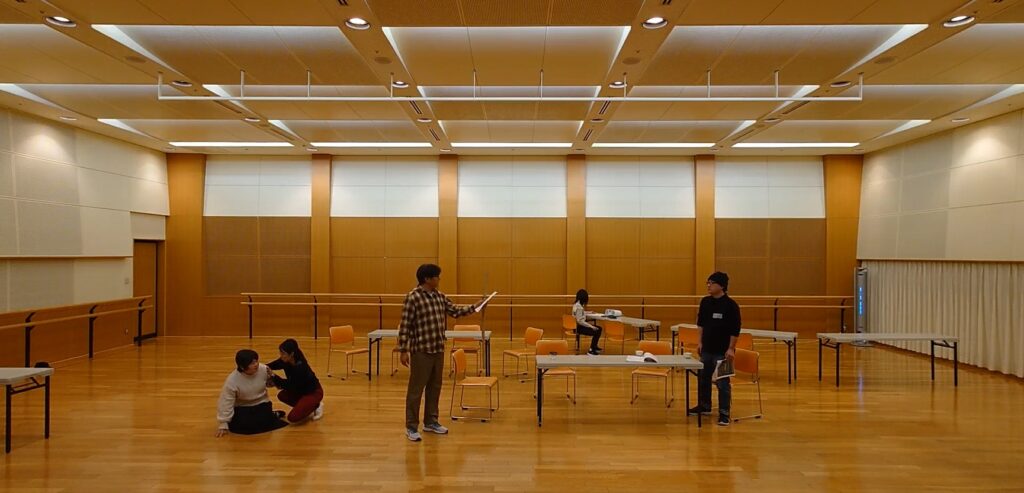 ◆「どこまで心と心を結ぶことができるか」をテーマに演劇経験者を対象としたワークショップを開催しました。既成の脚本を一部抜粋し、同じシーンを2チームに分かれて演じました。初日は演劇に関する講義や役の深め方について学んだほか、役や作品についてチームでディスカッションをしました。2日目は講師の演技指導を受けながら場面を創りあげ、お互いに鑑賞しました。参加者からは「自分がイメージしている表現ができるよう勉強していきたい」「役の掘り下げについてチームで意見を交えることで新しいものができた。もっと話していきたい」といった感想がありました。短期間で作り上げるため集中力が求められましたが、役の気持ちを伝えるにはどうすれば良いか、多くの気付きを得られたワークショップとなりました。