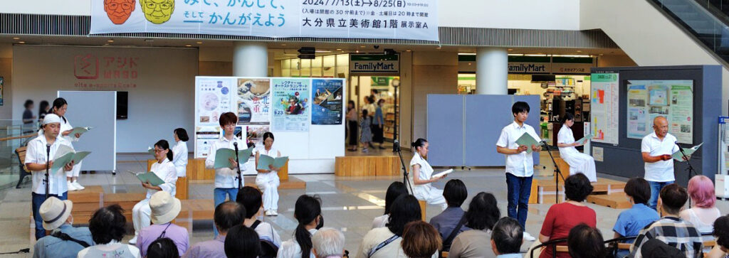 おおいた演劇の会は大分県内の劇団・演劇関係者が集まり発足しました。「大分の演劇活性化」を活動の軸に、地域の舞台芸術文化の発展に寄与し、演劇のすそ野を広げることを目的とした企画・運営を行っています。朗読劇「蝉なきやまず ~大分の空襲より~」をはじめ、地元大分を題材にした作品を多数上演しており、演劇を通して地域や社会、そこで生きる人々を見つめます。